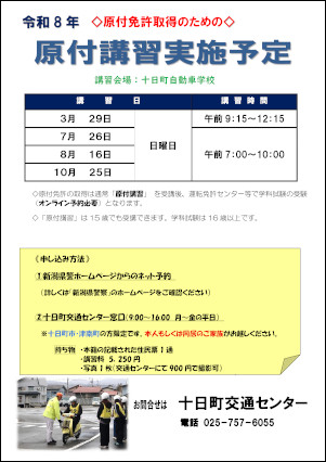※事前に十日町警察署で手続後、十日町交通センターへ来庁して下さい。
